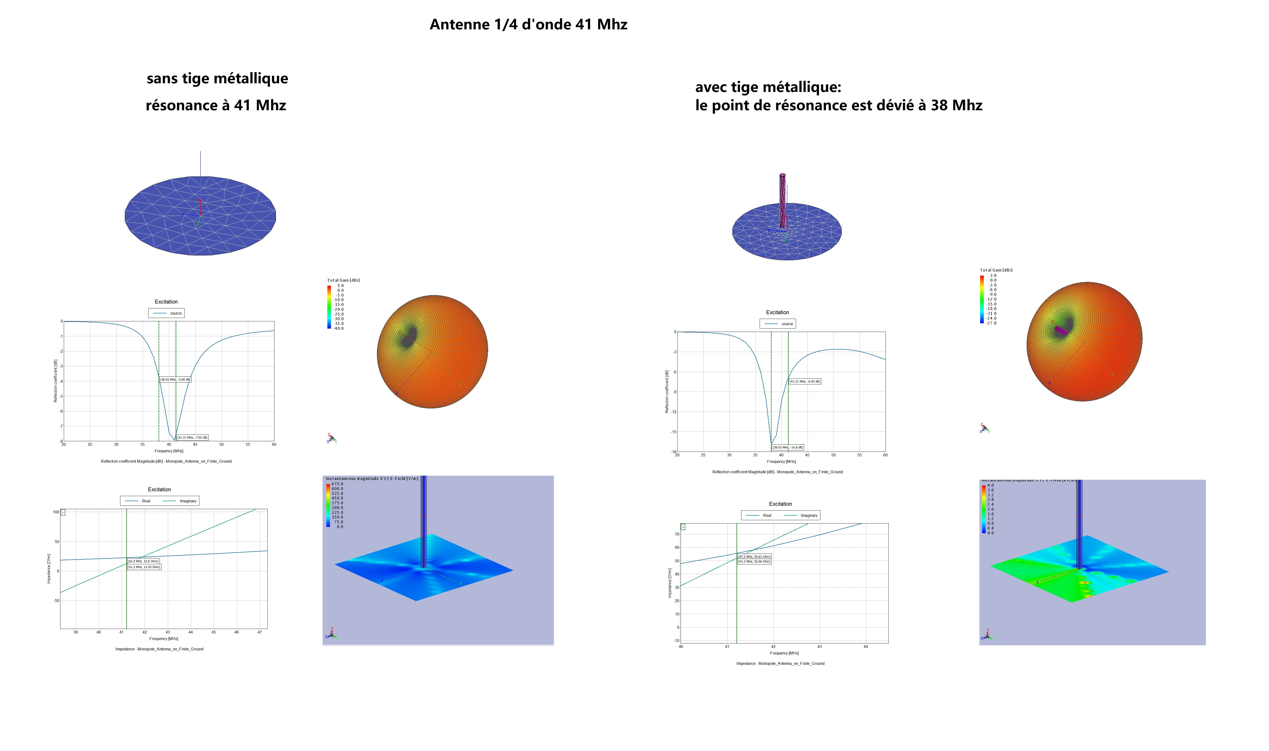 Antenne 41 Mhz avec barre/objets métalliques à proximité; déviation de l'impédance