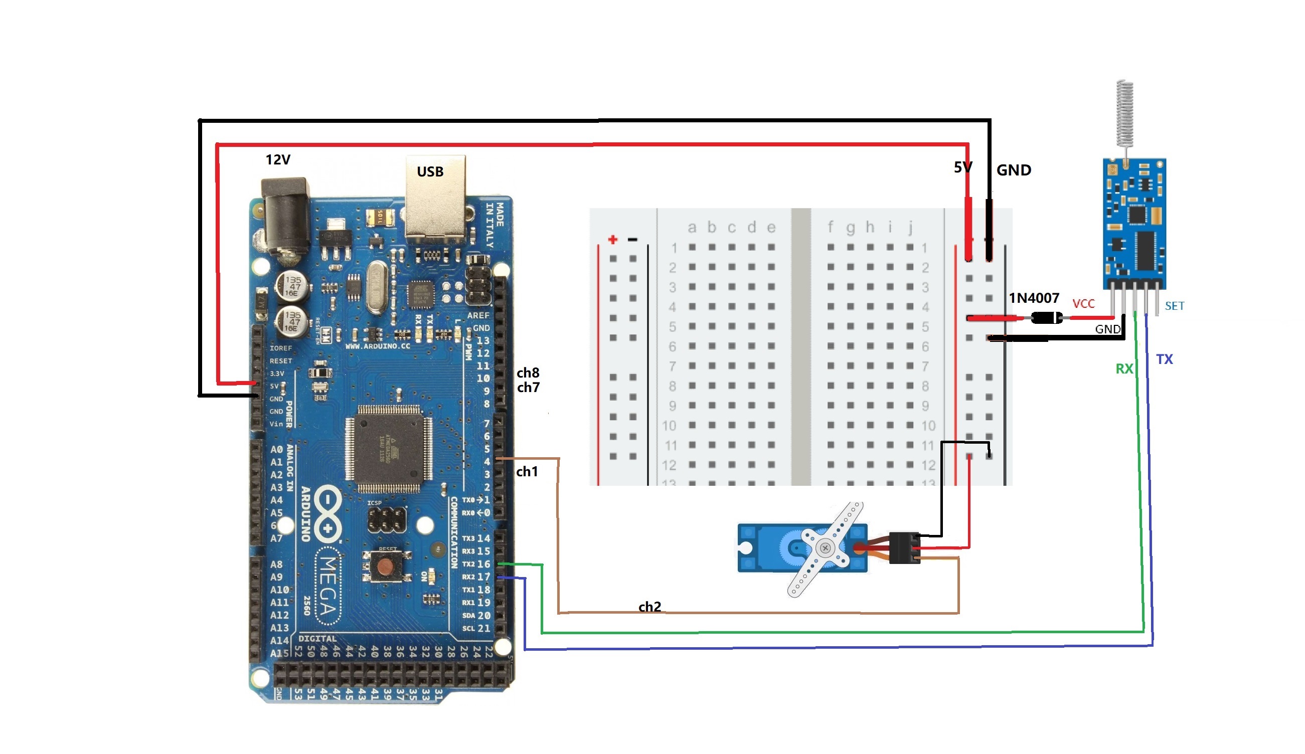 Coté réception, le mega2560 se comportera comme une centrale de contrôle programmable pour tout le SM ou le bateau.