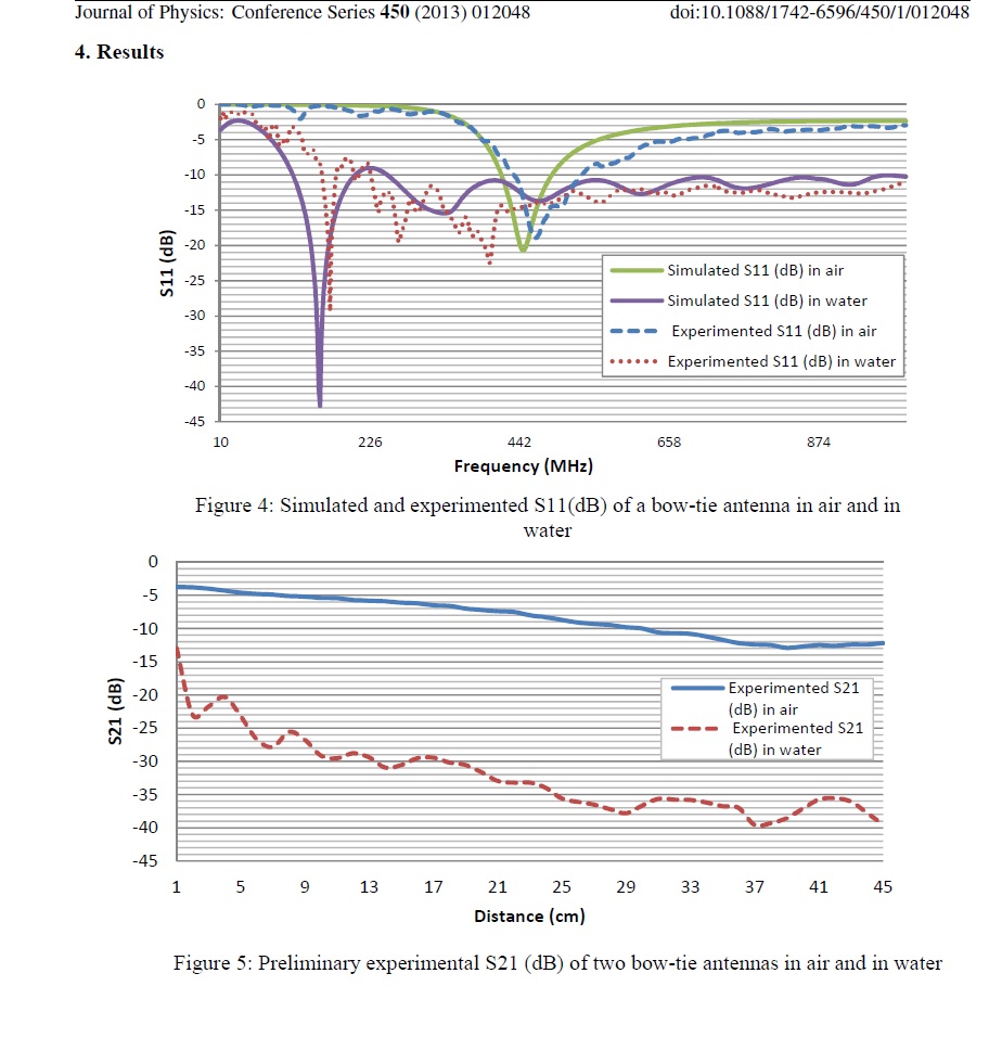 "A matched Bow-tie antenna at 433MHz for use in underwater wireless sensor networks"