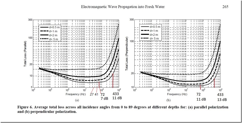 A 433 Mhz on perd environ 40 dB par 50 cm d'eau traversés sur l'article cité plus bas.