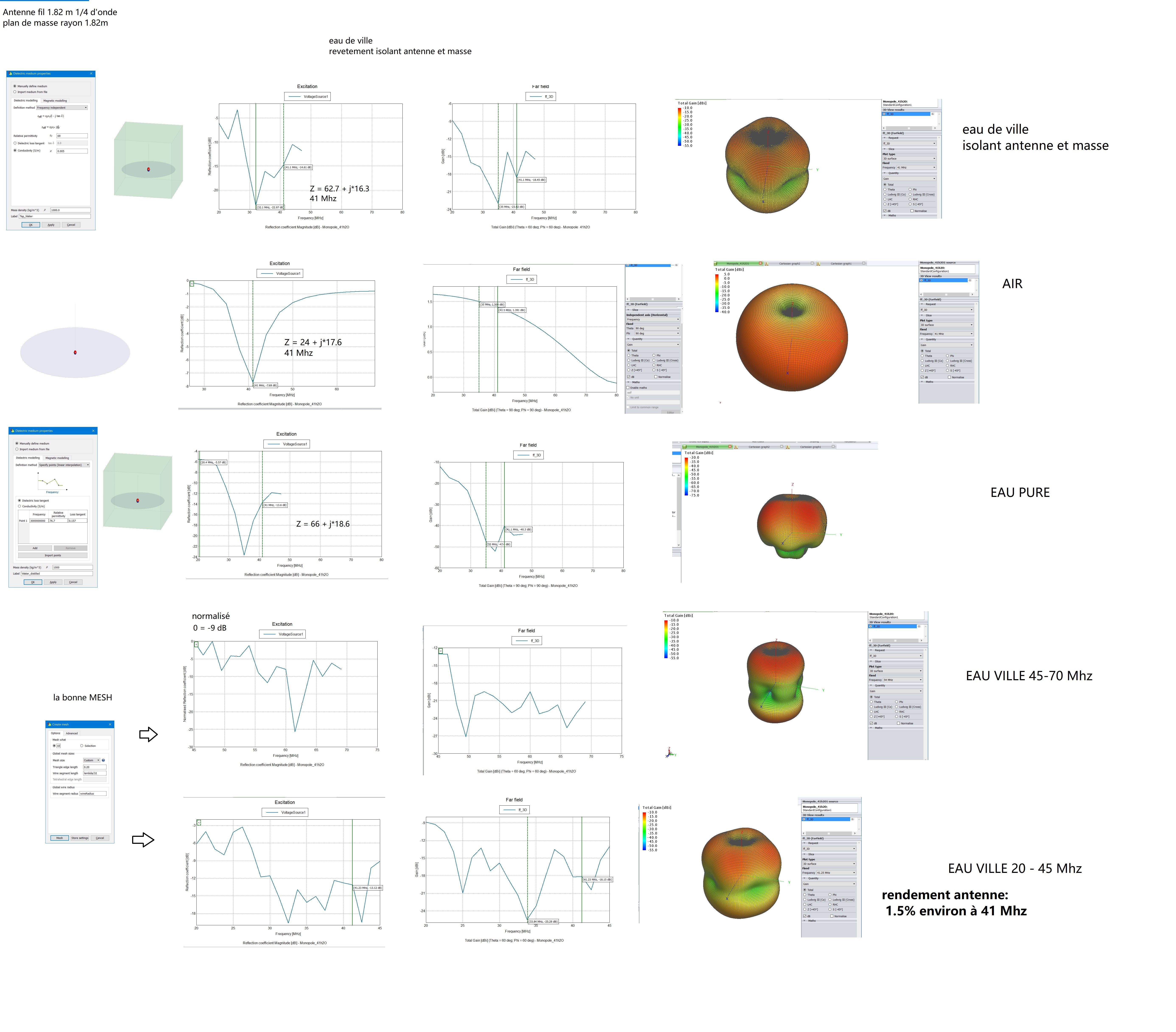 Pour le rendement nous avons du créer un cube d'eau autour de l'antenne pour le calcul.