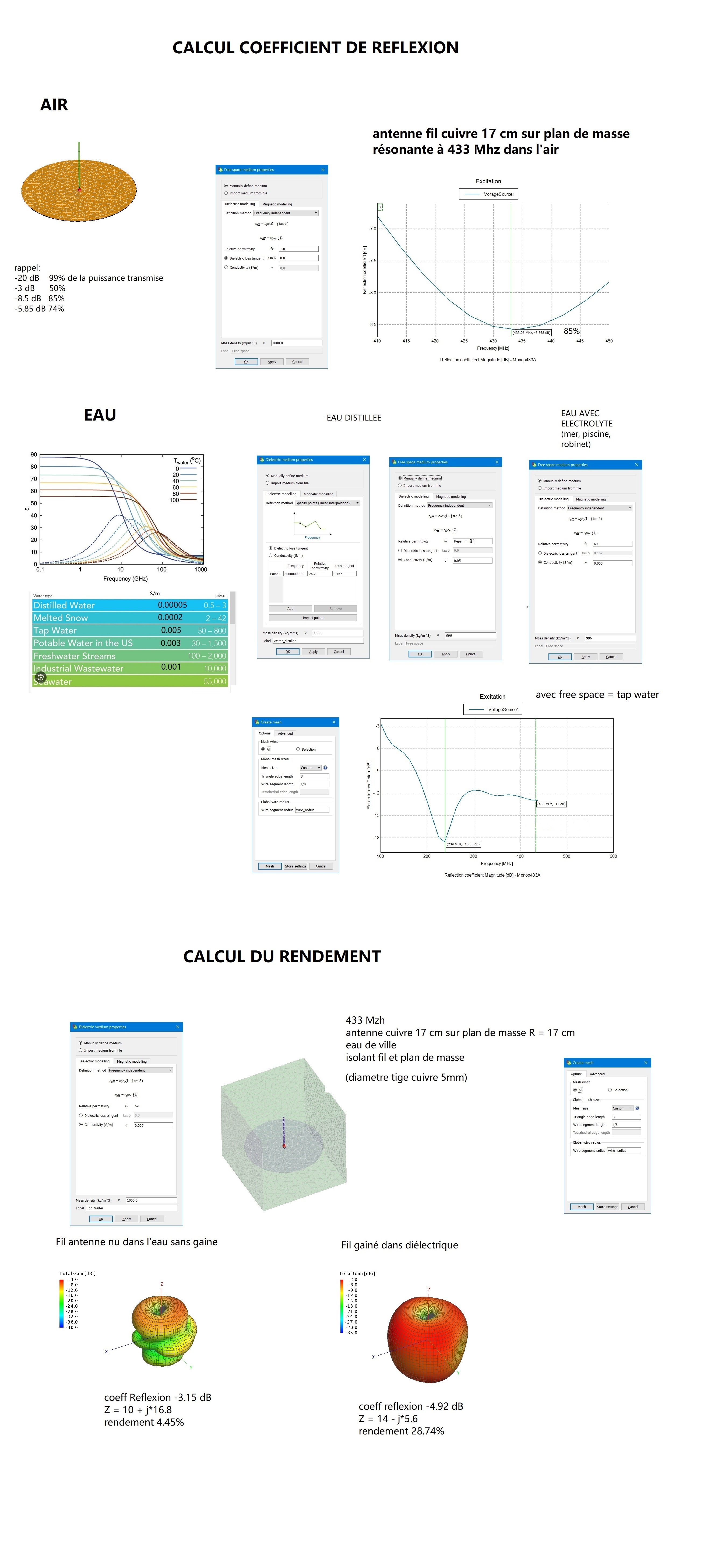 Antenne 433 Mhz simulée dans l'air et dans l'eau