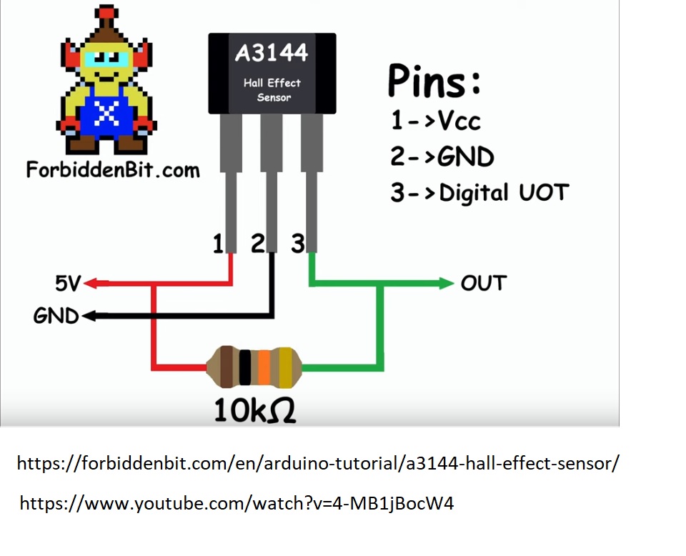 un capteur de Hall A3144 avec hystérésis pour éviter la vibration autour du point d'équilibre.