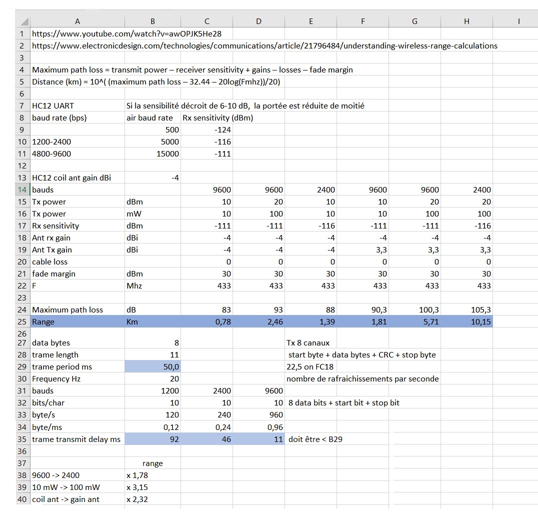 -> en passant de 9600 à 2400 bauds on multiplie la portée (dans l'air) par 1.78 (théorique)
