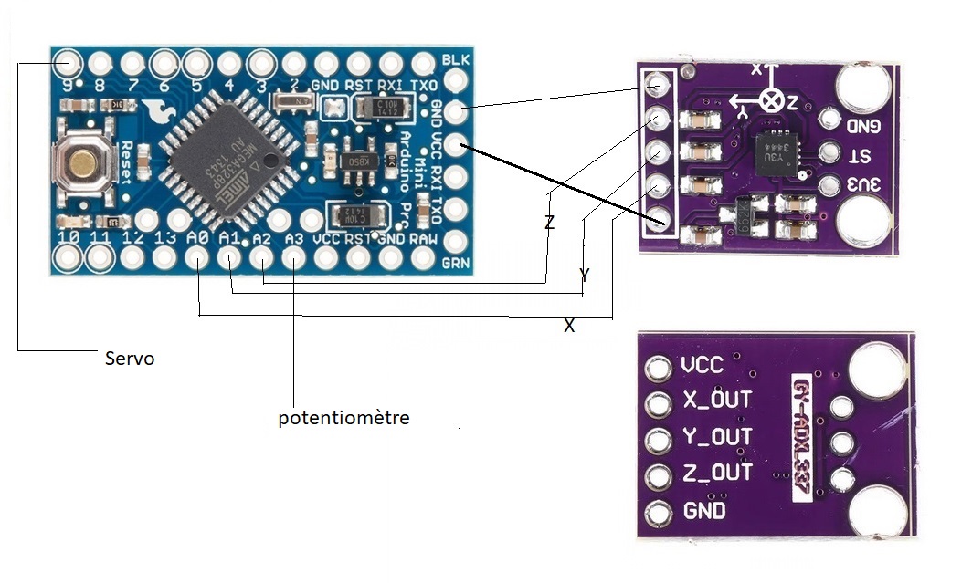 Je l'ai adaptée à l'accéléromètre ADXL335 ou 337